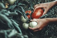 Koop dit stilleven Handen plukken van rijpe tomaten van Besa Art als print op canvas, aluminium dibond, (ingelijste) fotoprint, behang en ArtFrame. Voor jou op maat geprint in Fine-Art kwaliteit.