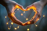 Koop de foto Handen vormen hart met lichtjes van Imperial Art House op canvas, aluminium dibond, (ingelijste) fotoprint, behang en ArtFrame, op maat geprint in Fine-Art kwaliteit.