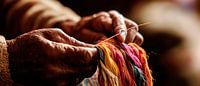 Zachte, gegroefde handen die kleurrijke draden vasthouden, vertellen over traditie en vakmanschap. De harmonieuze kleuren zijn een feest voor de zintuigen en brengen creativiteit in het spel. Dit schilderij is ideaal voor een gezellige woonkamer en creëert een uitnodigende sfeer die je aanmoedigt om te blijven hangen en te dromen.