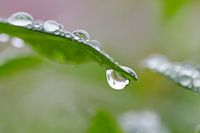 Na een regenbui blijven prachtige regendruppels achter op en aan de blaadjes in de tuin.