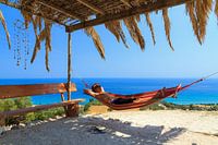 Prachtige opname van een jonge genieter in een hangmat op het Griekse eiland Zakynthos