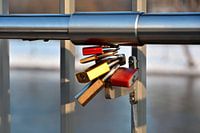 Hangsloten als teken van liefde op een brugleuning van Heiko Kueverling