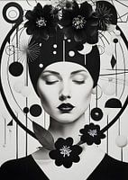 Dit opvallende kunstwerk, speciaal ontworpen als eyecatcher voor je huis, toont een intrigerend zwart-wit portret van een vrouw, verweven met strakke geometrische vormen en bloemen. Haar expressieve gezicht komt tot leven te midden van de scherpe lijnen en hoeken verweven met organische vormen, waardoor een visueel boeiend contrast ontstaat. De beperkte kleurenpalet van zwart en wit draagt bij aan een tijdloze elegantie en een eigentijdse uitstraling. Deze combinatie van een klassiek portret en moderne geometrie zorgt ervoor dat het kunstwerk de aandacht vangt en een verfijnde, artistieke sfeer toevoegt aan je ruimte. Het is een stijlvolle toevoeging die de muren van je huis tot leven brengt en gesprekken uitlokt.