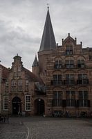 Hier is een Stadsgezicht van de oude hanzestad Zutphen te zien met de Drogenapstoren op de achtergrond.