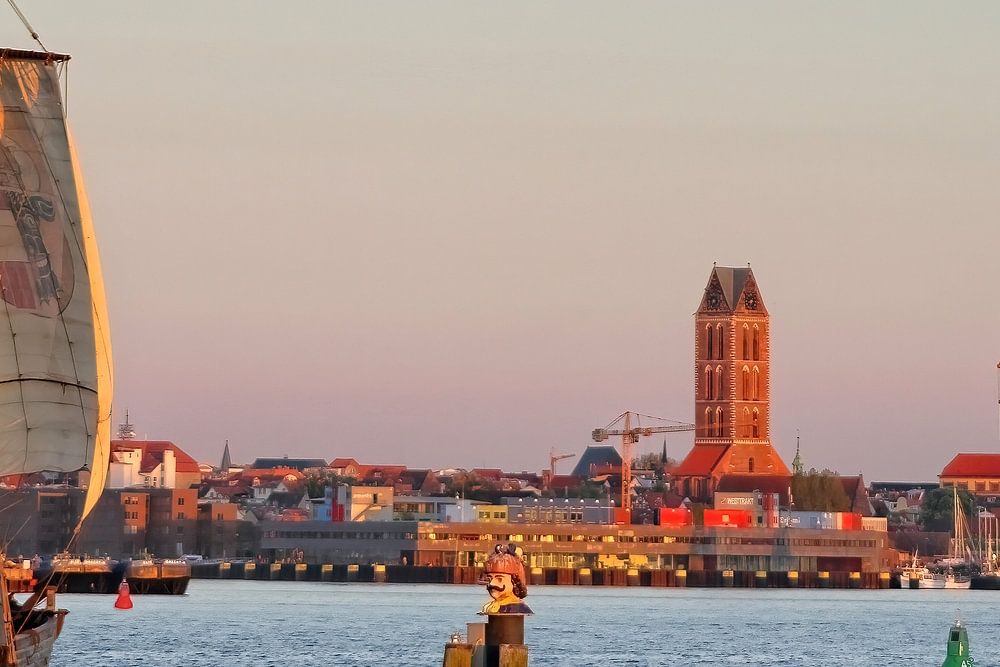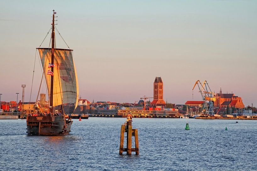 Hanzekruis Wissemara, ook wel Poelkruis genoemd, die de haven van de Hanzestad Wismar binnenkomt. De rader is een replica van een wrak uit het jaar 1354, dat in 1999 voor de kust van het Oostzee-eiland Poel werd geborgen. Het radertje Wissemara is vandaag op 29 mei 2004 gelanceerd.