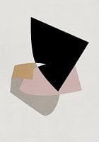 A modern masterpiece of Geometric Abstraction. Set against a soft off-white background, the center features overlapping irregular geometric shapes that create an elegant interplay. A bold black segment provides visual stability, contrasting beautifully with light blush pink, warm wood tones, and cool grey. The smooth, slightly curved…