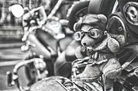 Een stoere Beer op een echte Harley dat is teder en stoer tegelijk. in ZW past in elk interieur, of je nu die stoere knipoog wilt toevoegen of juist dat zachter er in wilt brengen, deze teddybeer past in elk interieur strak op acryl of juist wat zachter op canvas geprint. helemaal gaaf wordt het wanner de foto op metaal wordt geprint.