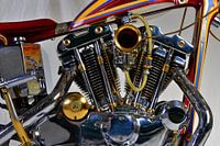 Deze Harley Davidson chopper uit 1975 met een 1000 cc Sportster motor is een lust voor het oog van puristische chopperfans.