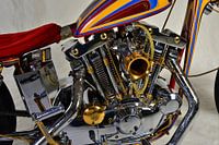 Deze Harley Davidson chopper uit 1975 met een 1000 cc Sportster motor is een lust voor het oog van puristische chopperfans.