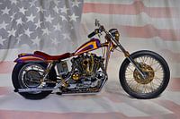 Deze Harley Davidson chopper uit 1975 met een 1000 cc Sportster motor is een lust voor het oog van puristische chopperfans.