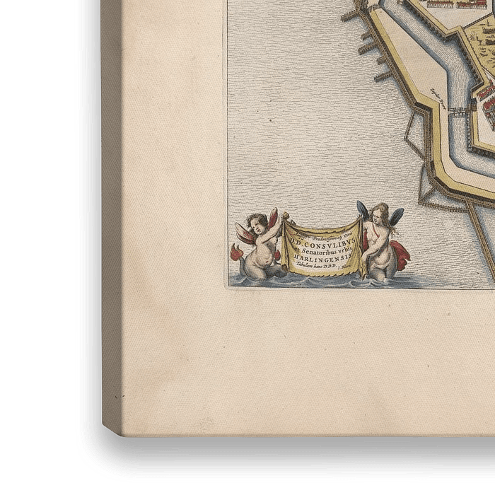 Koop de illustratie Harlingen, Stadsplattegrond Joan Blaeu 1652 van Atelier Liesjes op canvas, aluminium dibond, (ingelijste) fotoprint, behang en ArtFrame, op maat geprint in Fine-Art kwaliteit.