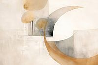 Harmonie | Abstract Aardetinten - Het schilderij toont een abstracte samenstelling met organische en geometrische vormen in een subtiele harmonie, waar aardetinten de boventoon voeren. De gouden en zandkleurige rondingen contrasteren zacht met grijze elementen, terwijl textuur en minimalisme elkaar vinden in dit moderne kunstwerk.