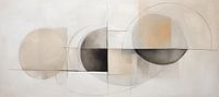 Harmonie | Grijs - Het schilderij toont een abstracte compositie van overlappende cirkel- en lijnvormen, uitgevoerd in een beperkt palet van neutrale en aardse tinten. De subtiele textuur die her en der zichtbaar is, draagt bij aan de diepte en het gelaagde effect. Geometrische precisie en organische vormen vinden een harmonieus…