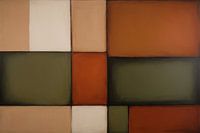 "Harmonie in Aardetinten" is een minimalistisch kunstwerk dat bestaat uit een serie zorgvuldig gearrangeerde kleurblokken. De gebruikte aardetinten variëren van diep groen tot warm oranje, met zachte overgangen die rust uitstralen. Deze abstracte compositie nodigt de kijker uit tot contemplatie, waarbij de geometrische vormen een gevoel van stabiliteit en balans geven. Het grote formaat van het doek benadrukt de impact van de eenvoudige vormen en het subtiele kleurgebruik. De techniek lijkt olieverf op canvas te zijn, waarbij de kunstenaar heeft gekozen voor zachte randen om de kleurblokken te definiëren. Dit werk is typerend voor moderne kunst, waarbij de nadruk ligt op vorm en kleur boven de representatie van de fysieke wereld. De zorgvuldige plaatsing van de blokken en de overwogen keuze van kleuren suggereren een diepe overdenking van de kunstenaar over de interactie tussen kleur, vorm en ruimte.