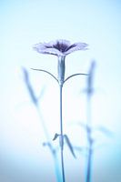 Deze bloem spreid zijn blaadjes uit, alsof het wil zeggen 'kom maar je krijgt een knuffel van me'. Uit gevoerd in zachte tinten waarin blauw de boventoon voert.