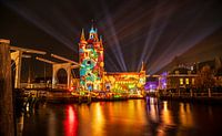 Tegen de donkere hemel boven Zierikzee tekenen de paarse lichtstralen van "Zeelicht" zich af als penseelstreken van een kunstenaar. Onder dit betoverende schijnsel komt de Zuidhavenpoort tot leven: haar eeuwenoude baksteen vangt het licht en glanst zacht, alsof verleden en heden elkaar even aanraken.