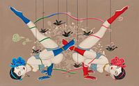 Dit is een schilderij uit mijn yoga serie. Ik combineerde veel oosterse kunstelementen in dit schilderij om een betere voorstelling te maken van deze yogahouding. Het schilderij bevat een boodschap die is "vallen is gewoon een andere manier om te vliegen".