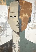 Details: gezicht, vrouw, man, modern, portret, kunst, aarde kleuren, textuur, diepte, complex