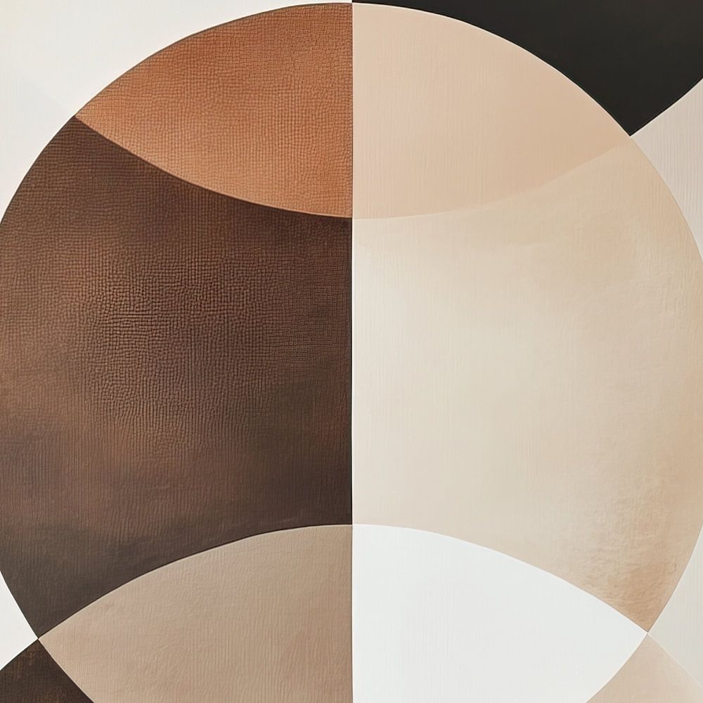 Details: abstract, cirkels, overlappend, beige, bruin, zwart, minimalisme, moderne kunst, diepte, eenvoud