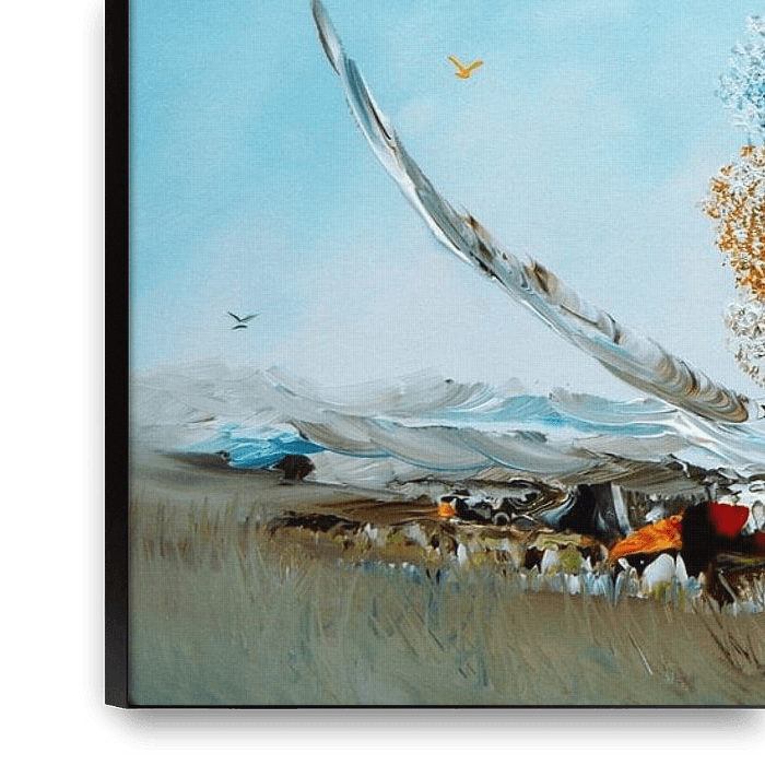 Jouw gekozen kunst op doek, gespannen in een aluminium frame. Snel en eenvoudig te verwisselen voor een frisse uitstraling en helemaal zoals jij het wilt.