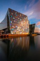Het nieuwe concertgebouw en conferentie centrum aan de kade bij de Haven van Reykjavik genaamd Harpa.