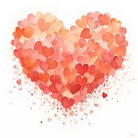 Vrolijk hart in rode en roze kleuren.