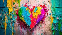 Hart met verschillende kleuren op de muur