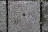 Op een gewone stoep ontstond onverwacht een perfect zwart hartje — alsof de stad zelf even verliefd werd.