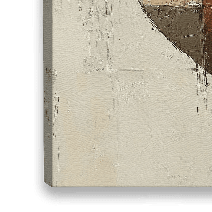 Harte Rust - Dit abstracte schilderij toont twee prominent afgebeelde harten in rijke aardtonen tegen een kalmerend, neutraal wit en beige achtergrond, wat een gevoel van rust en harmonie oproept.