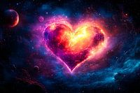 Een prachtig kosmisch ontwerp dat een fel verlicht hart toont, omringd door een explosie van kleuren en sterren in een diepe, mysterieuze ruimte. Dit kunstwerk straalt energie en emotie uit, perfect om een unieke sfeer in je interieur te creëren. Een ideale keuze voor liefhebbers van zowel moderne als abstracte kunst die een verbinding…