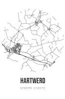 Zwart-witte landkaart, stratenplan of plattegrond van Hartwerd. Hartwerd is gelegen in de gemeente Sudwest-Fryslan, provincie Fryslan. Op de stadskaart zijn alle openbare wegen in Hartwerd opgenomen. Verder is de kaart voorzien van de coördinaten van het centrum van Hartwerd.