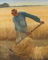 De weergave van alledaagse situaties. Het is een monumentaal portret - niet van de broer, wiens gezicht vrijwel verborgen is, maar van de landarbeider als type, als krachtige drager van Ring's hoop op revolutie. Het is echter ook een afbeelding van de maaier die de korenvelden neermaait, en daarmee een beeld geeft van de positie van de mens die zweeft tussen het leven - het rijpe korenveld - en de onvermijdelijke dood. De extreem hoge horizon is zeer typerend voor het werk van Ring. Hier dient hij om te voorkomen dat de maaier naar de hemel reikt en om hem stevig aan de grond te houden.