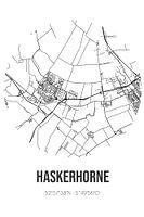 Zwart-witte landkaart, stratenplan of plattegrond van Haskerhorne. Haskerhorne is gelegen in de gemeente De Fryske Marren, provincie Fryslan. Op de stadskaart zijn alle openbare wegen in Haskerhorne opgenomen. Verder is de kaart voorzien van de coördinaten van het centrum van Haskerhorne.