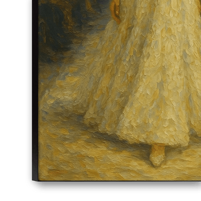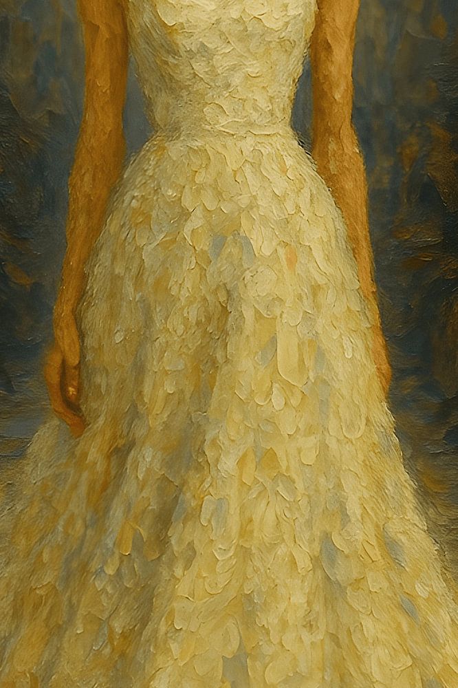 Ervaar de betovering van haute couture vastgelegd in penseelstreken.