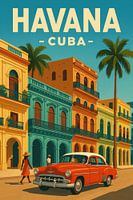 Een levendig kleurenspectrum van helder geel en groen brengt de Cubaanse levensvreugde tot leven. De nostalgische auto, omringd door prachtige koloniale gebouwen, straalt vakantiewensen en avontuur uit. Dit schilderij is perfect voor de woonkamer, trekt de aandacht en brengt een vleugje Caribische flair in je huis.