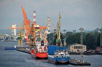 Deze foto van de haven van Gdansk in Polen is op 23 juli 2015 genomen vanaf een cruiseschip.