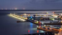 De haven van Helgoland in de avonduren, nacht fotografie