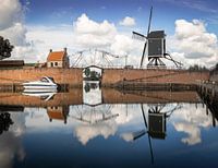 Het blijft mooi een deze plek in Heusden bij de haven te bezoeken. Zelfs overdag met een dik pak bewolking kun je er bijzondere plaatjes schieten. Het water zorgt voor een mooie reflectie van de molen.