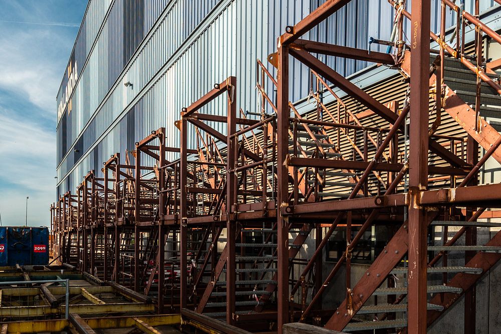 Industrial foto van het havengebied langs de IJssel in Krimpen met hijskraan en scheepswerf.