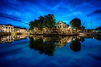 De haven van Middelharnis. In de lucht zijn lichtende nachtwolken te zien. Een bijzonder fenomeen wat zo af en toe te zien is rondom de langste dag.