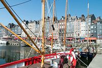 Dit is een kleurrijke foto van het kleine haven stadje Honfleur aan de Seine in Frankrijk.