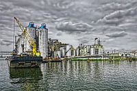 Schip aangemeerd in de haven van Amsterdam in HDR