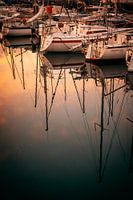 Boten in de haven van Fecamp tijdens zonsdondergang