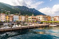 Pleziervaartuigen en vissersboten in de haven van Gargnano aan het Gardameer, Lombardije, Italië