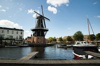 Molen De Adriaan aan de Scheepmakersdijk met uitzicht over de Haven van Haarlem