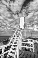 Het Friese IJsselmeerstadje Hindeloopen heeft een geheel origineel eigen havenmeestershuisje bij de ingang van de haven. Hier afgebeeld in zwartwit op een late nazomermiddag