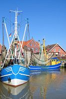 Krabbenkotter in de haven van Neuharlingersiel,Oost-Friesland,Noordzee,Nedersaksen,Duitsland
