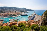 Uitzicht vanaf de Schlossberg over de haven van Nice, Côte d'Azur, Frankrijk.