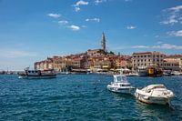 Haven van Rovinj in Kroatië met een aantal boten en zicht op het oude centrum