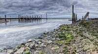 Haven van Sil tijdens een herfst storm, het authentieke haventje gelegen aan de Waddenzee bestaat uit oude palen en aanlegsteiger, in de zomer ideaal voor kleine zeilbootjes, in de winter liggen er zeehonden en komen er allerlei vogels.